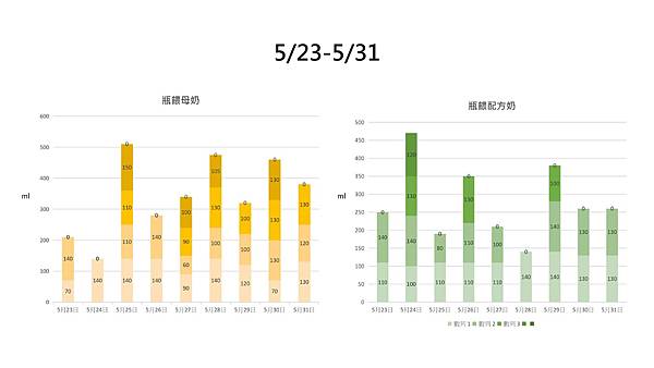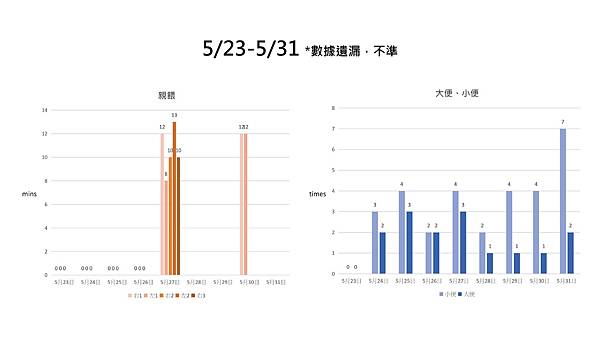 ■ 5/15回家後,直到5/22完全沒紀錄,因為那一週我和老公簡直生活在地獄裡,手忙腳亂,沒有一天睡好覺。我公婆問我需不需要住他們家幫忙照料,我完全沒思考就立刻答應了。5/23開始跟公婆住,剛開始要跟公婆磨合,也要跟寶寶建立默契,所以數據都不準確,唯一能觀察到的就是寶寶奶量可以喝到140-150ml/餐。