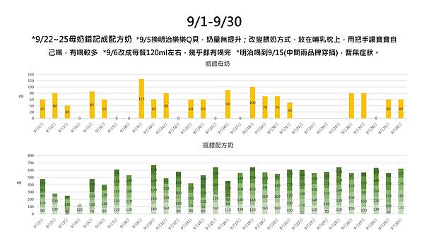 ■ 這個月的母奶量又更少了,親餵已經無法餵飽寶寶,親餵的作用只剩下安撫,所以不記錄次數了,每天喝的母奶量已經不到100ml了,我也是差不多在9月底10月初慢慢把母奶斷掉,不再擠奶,實在是擠不出來了。整個8、9月我一直有在嘗試各種卵磷脂、發奶茶、倍乳茶,甚至看中醫喝水藥,都沒有效果,基本上,如果是因為西藥退奶的,就沒任何希望了。我的母奶之路就這樣結束了,雖然有點落寞,但也有一種解脫的感覺,終於不用時常經歷乳房癢癢的感覺,不用一直處於睡不飽、日夜顛倒的狀態,也可以好好減肥了。