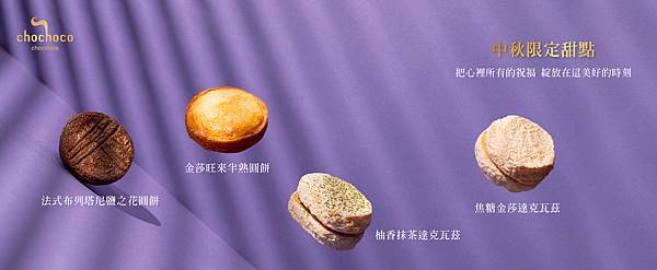 ■ 言歸正傳,chochoco每年都會推出限定中秋節禮盒,內容物每年都不一樣,這點值得嘉許,有用心在研發新口味。今年推出了綻月中秋禮盒8入$608 /12入$758 、流月中秋禮盒12入$758(已完售) 、中秋快樂禮盒$1358 、金色派對16入$698 、金色比利時生巧克力49片$638;前三個禮盒以法式甜點為主,常溫保存12天,建議冷藏風味更加,後兩個金色系列以巧克力為主,冷藏保存一週,詳細內容點選 官網 看更清楚。